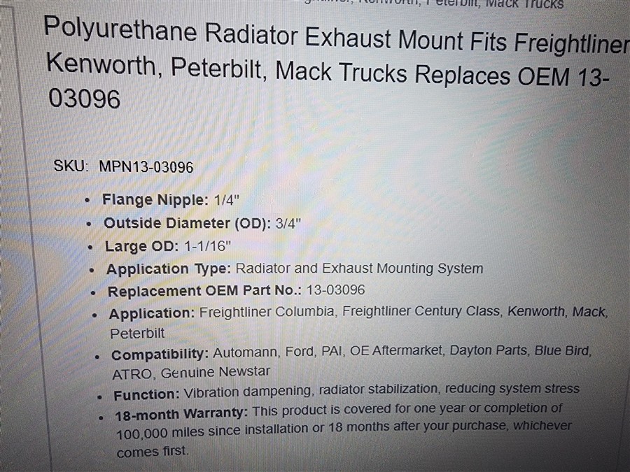 RADIATOR EXHAUST MOUNT FITS FREIGHTLINER,KENWORTH AND MACK TRUCK OEM 13-03096