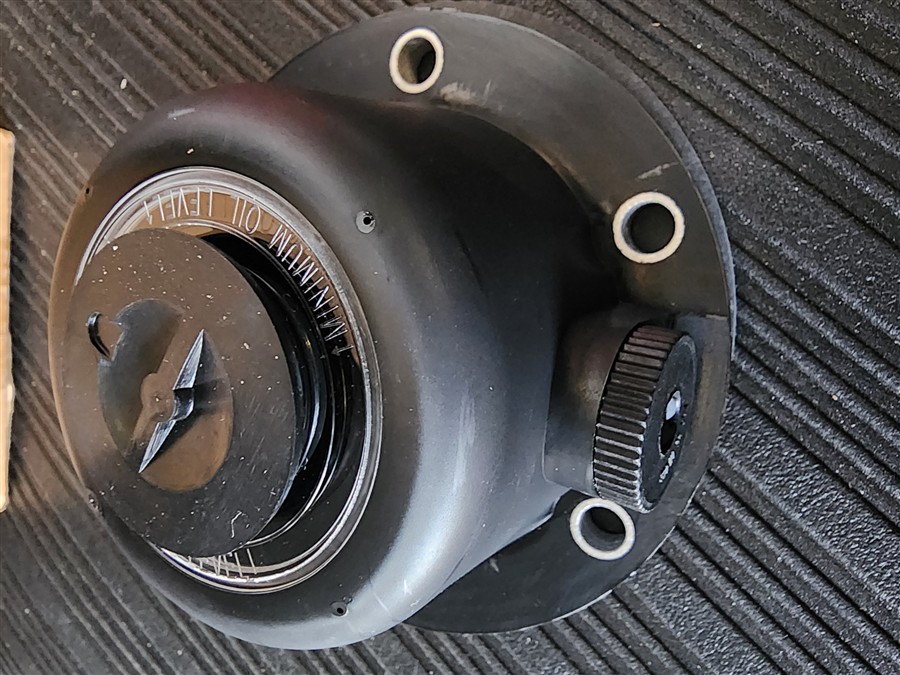 HUB CAPS Composite Steer Hub Cap Replaces 1612 1711 and 343-4024 One black, composite, oil fill hub cap. Includes mounting gasket, window, vent plug, side pipe fill plug, and 6 mounting bolts. Light weight, high impact composite body resists salt, chemicals, corrosion, and UV damage. Magnetic side f…