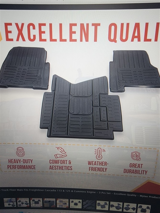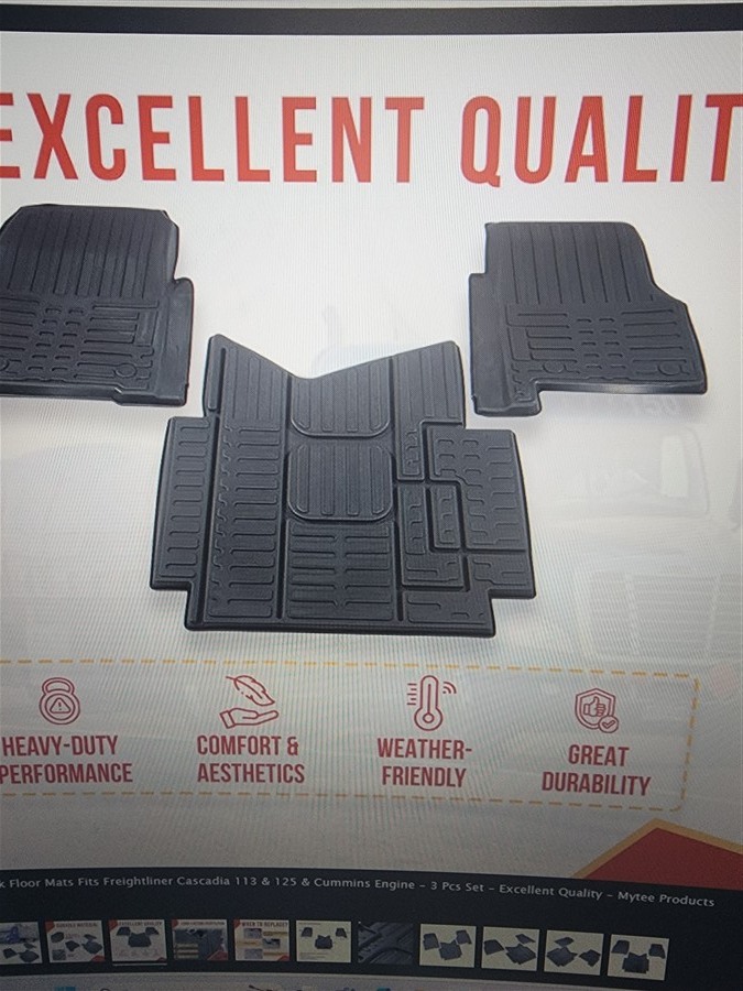 MAT Semi Truck Floor Mats Fits Freightliner Cascadia 113 & 125 & Cummins Engine - 3 Pcs Set