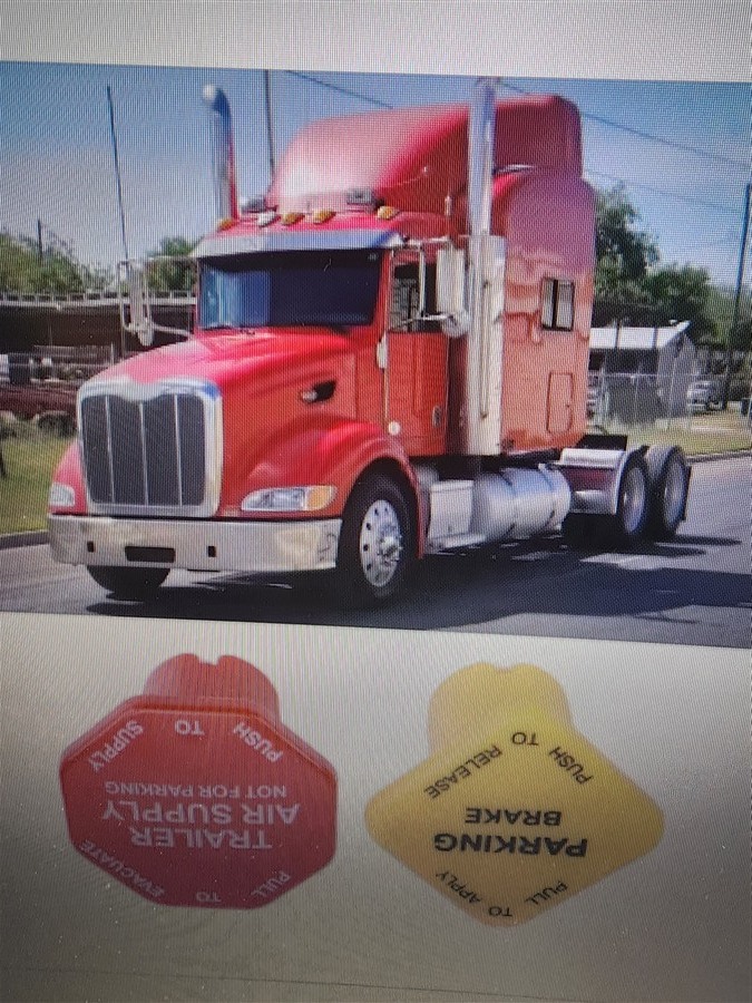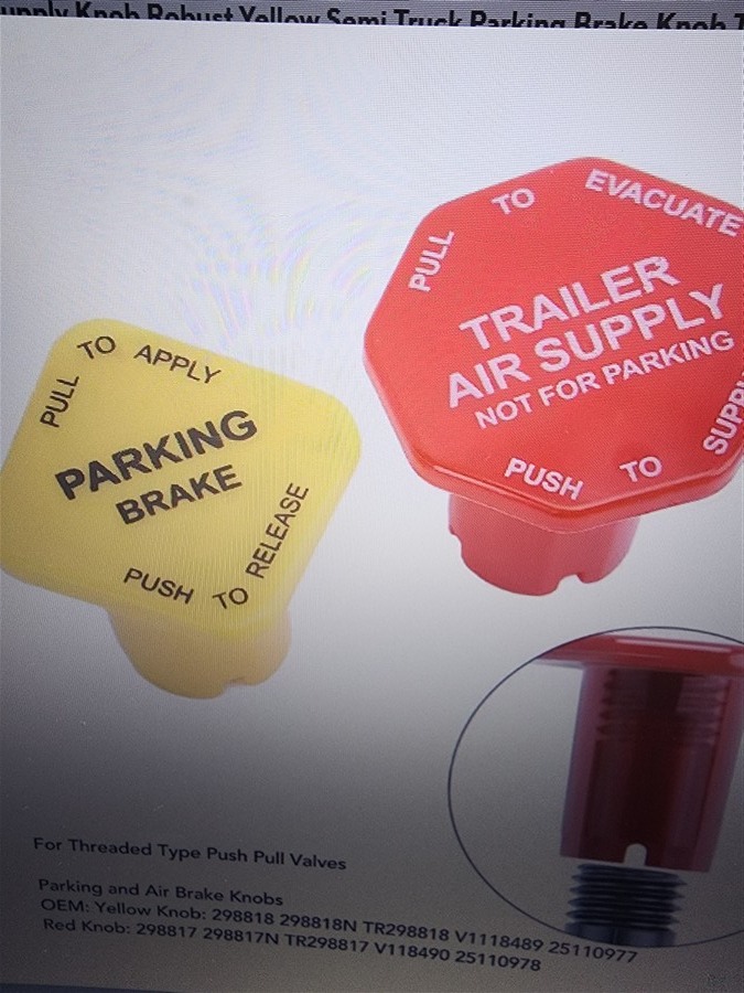 TRAILER TRUCK AIR SUPPLY VALVE RED YELLOW Red Trailer Air Supply Knob Robust Yellow Semi Truck Parking Brake Knob Threaded Type Plastic 25110977 for Semi Truck Trailer ( WHITE RACK )