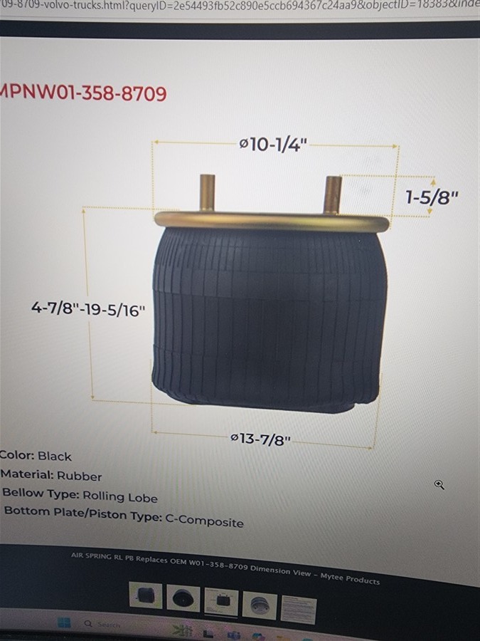 VOLVO Air Spring Bag for Volvo Trucks Replaces OEM W01-358-8709, W01-358-8751 FLTA1R13159 1R13-159 Air Suspension Spring Bag W01-358-8709 For Hendrickson Goodyear 1R13-159 Compatible with Other Brands & Their Part Numbers: