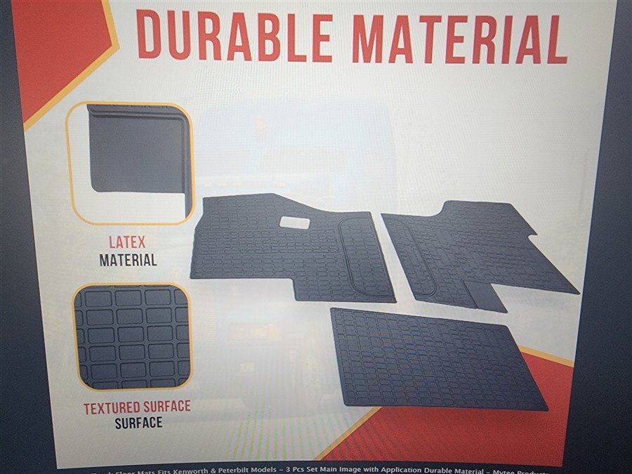 KENWORTH Semi Truck Floor Mats Fits Kenworth & Peterbilt Models - 3 Pcs Set SKU MAT-KWPAT3P-2D1323 Left Mat Size: 31-1/2" x 29-7/8" Right Mat Size: 33" x 29-5/16" Middle Mat Size: 29-1/2" x 19-5/8" Position: Inside Driver Compartment Easy & Quick Installation Weather-Friendly Sold as 3 Pcs…